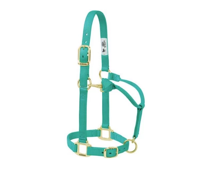 This is the same quality-made, original Weaver halter you’ve come to know and love! With top quality 1 in nylon construction, heat-sealed oblong buckle holes, box-stitching at stress points and true-to-fit-sizing, this will be your go-to halter. This simple, non-adjustable design features a comfortable rolled throat and brass plated hardware.