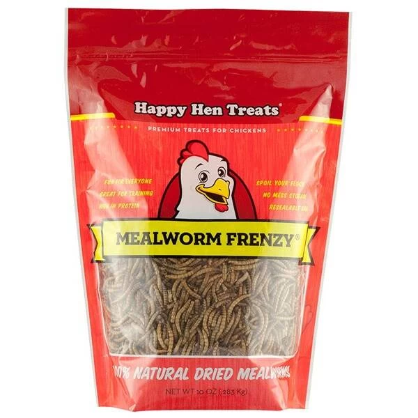Watch your chickens dance and peck in a frenzy for these 100% natural whole-dried mealworms. It contains natural dried mealworms that chickens absolutely love to eat. Dried mealworms offer chickens the taste they love without the inconvenience of storing and handling live worms.