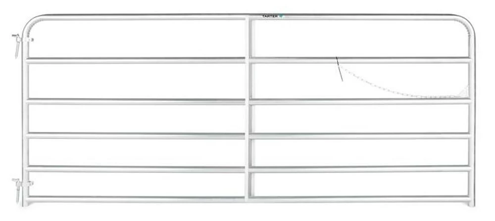 This 6-Bar Economy Galvanized Tube Gate has the quality, features, and durable value you’ve come to expect from Tarter. This gate is perfect for placement at construction sites, for crowd control, or for fencing pastures, orchards, and gardens. 50 in high with vertical “Z” Braces, this gate is made from 1-3/4 in round high-tensile strength galvanized tubing with superior continuous welded saddle joints. Gates come with hinges, hinge pins and 22 in snap chain.