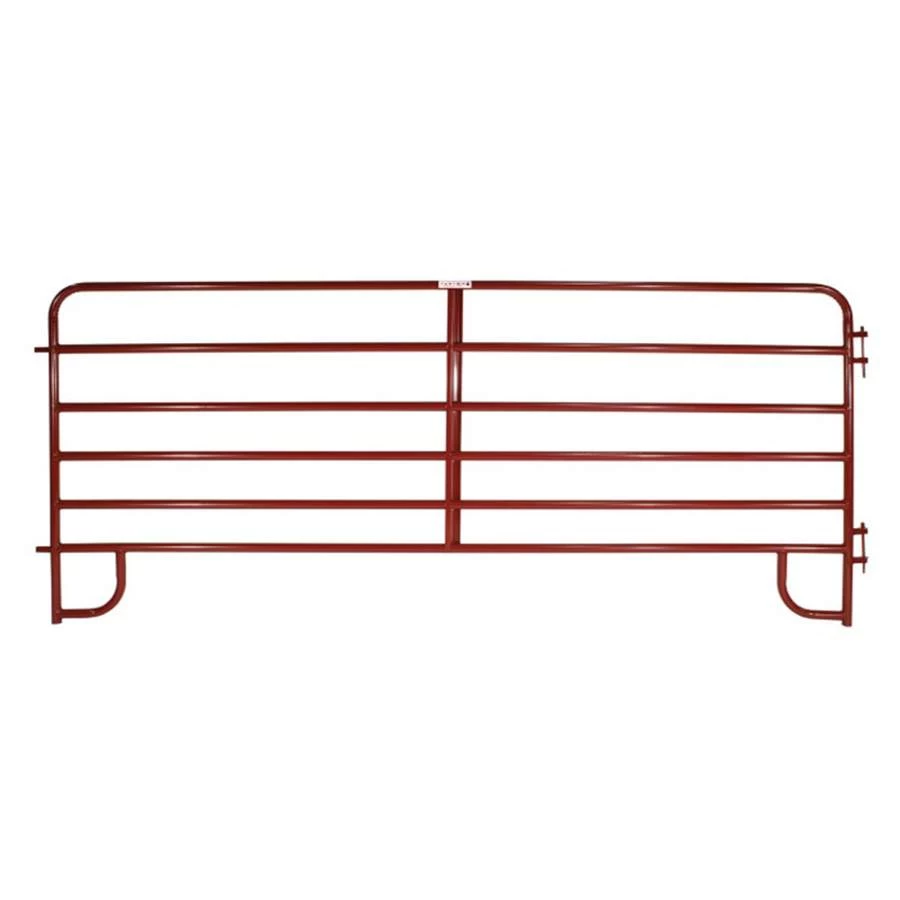 Tarter’s 6-Bar Economy Corral Panel is ideal for light to medium confinement of livestock in round pens and working areas. Constructed of 1-3/4 in round high-tensile strength steel tubing with continuous-welded saddle joints and Z braces for superior longevity in the field. Custom loop legs prevent sinking in soft surfaces and corrals are easily installed with the quick-pin latch system.