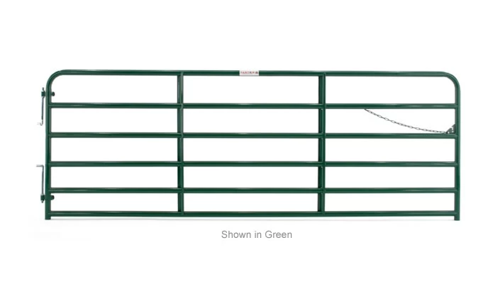 This 6-Bar Extra Heavy-Duty Bull Gate is designed for feedlots, large herd containment, and heavy confinement situations with the quality, features, and strength you have come to expect from Tarter. This 52 in -high gate features vertical “Z” Braces and 2 in diameter round high-tensile strength steel tubing with continuous-welded saddle joints. A superior E-Coat finish ensures longer life in the field. Gates come with (2) 3/4 in x 12 in hinge pins and heavy-duty welded chainlatch.