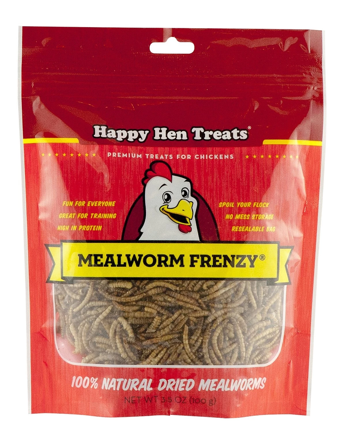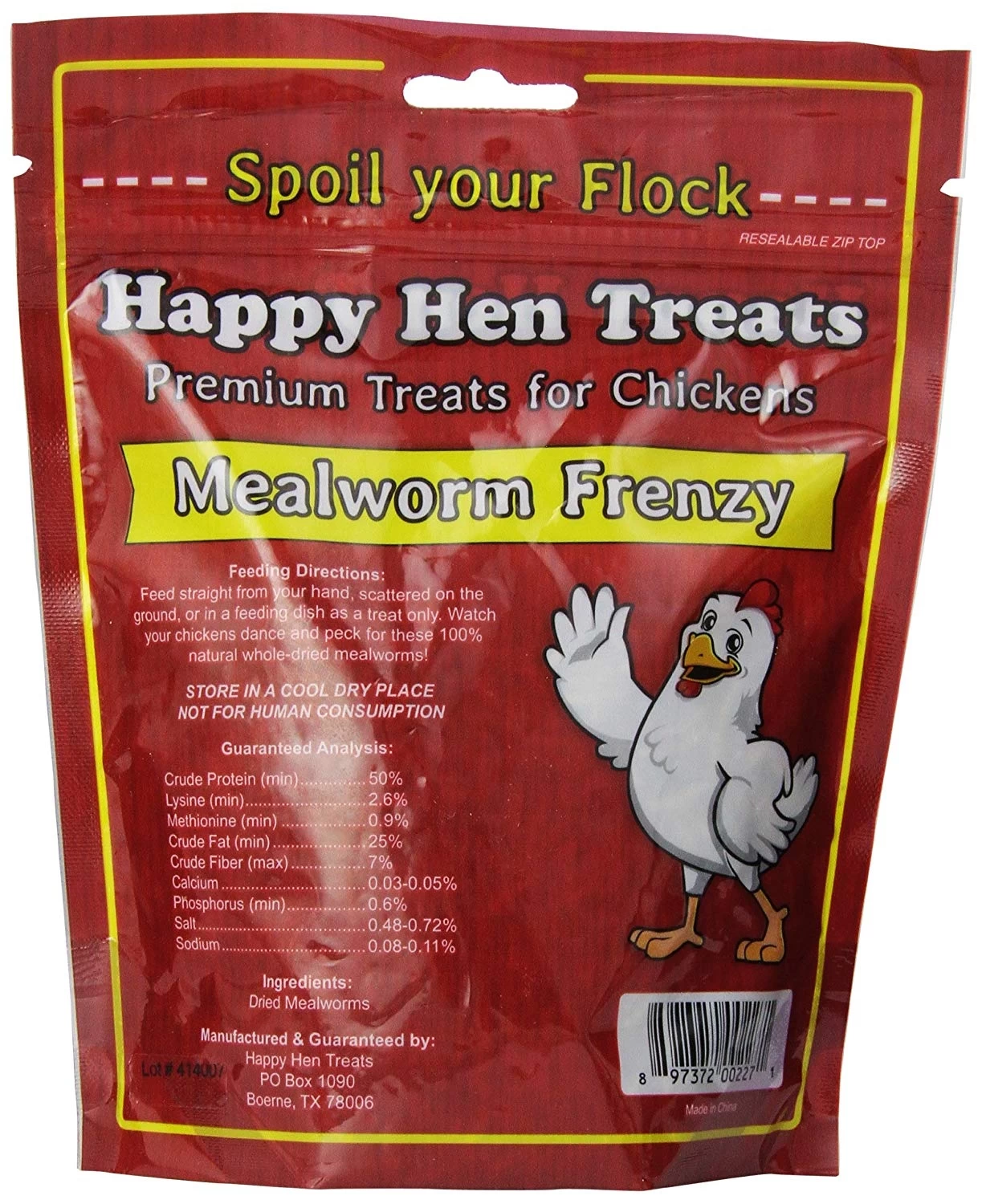 Contains natural dried mealworms that chickens absolutely love to eat. Dried mealworms offer chickens the taste they love without the inconvenience of storing and handling live worms.