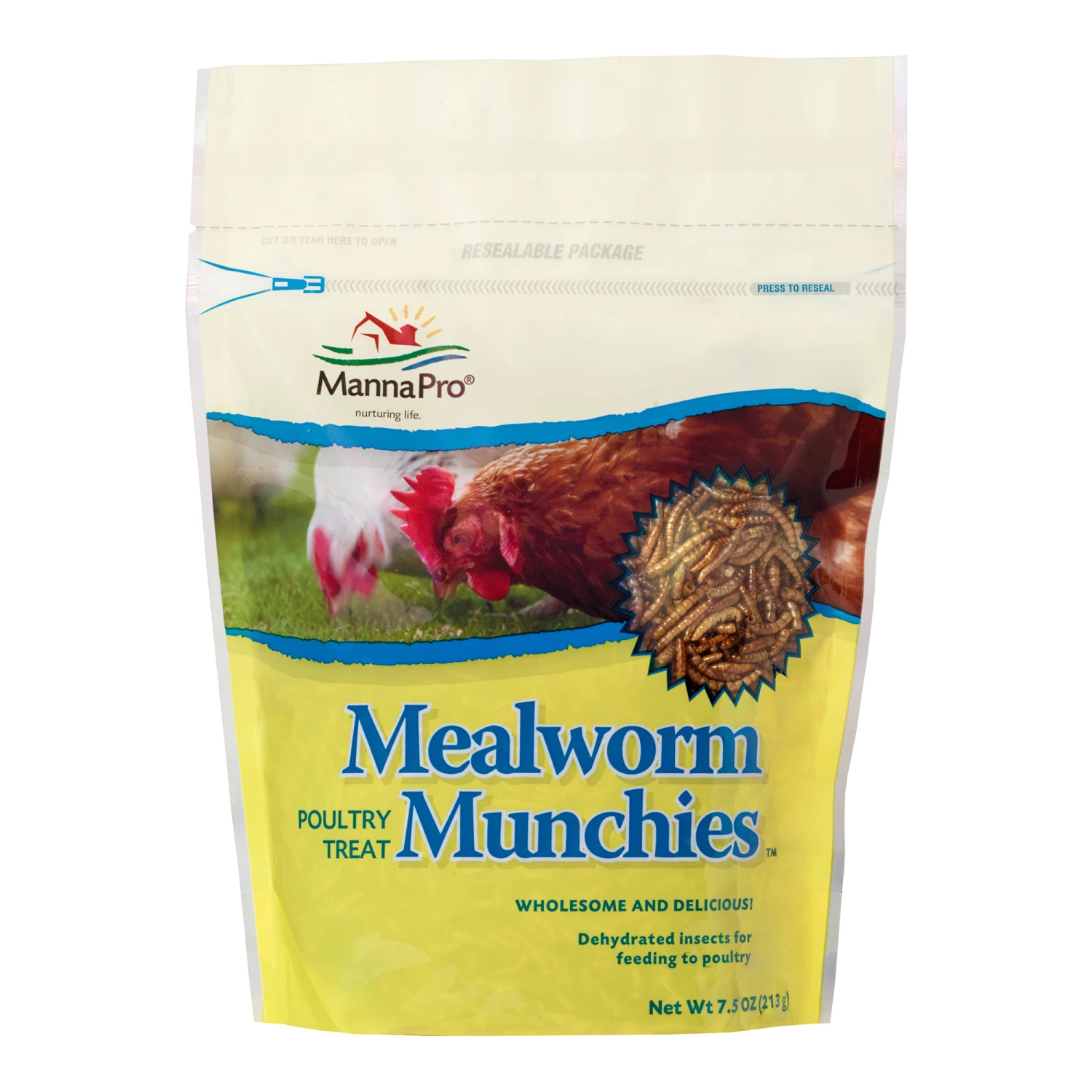 All classes of poultry love to eat bugs! Give your flock the taste they crave with Manna Pro Mealworm Munchies! Perfect for flocks who have limited access to finding their own insect snacks, these dried mealworms are high in nutritious protein and fat. At Manna Pro, we understand that animals are our companions as well as our providers. So whether you raise blue-ribbon show birds, or you simply enjoy the eggs and entertainment from your backyard flock, treat your feathered friends with wholesome and delicious Mealworm Munchies!
