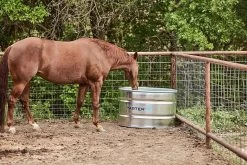 The Round Ultra 105 is a great livestock waterer. This galvanized steel water trough holds approximately 105 gallons and has the durability and strength you can rely on for years to come. A rolled rim top means no sharp edges to ensure livestock safety. This rust-resistant stock tank has an easy-to-use plug to make draining and cleaning easy.