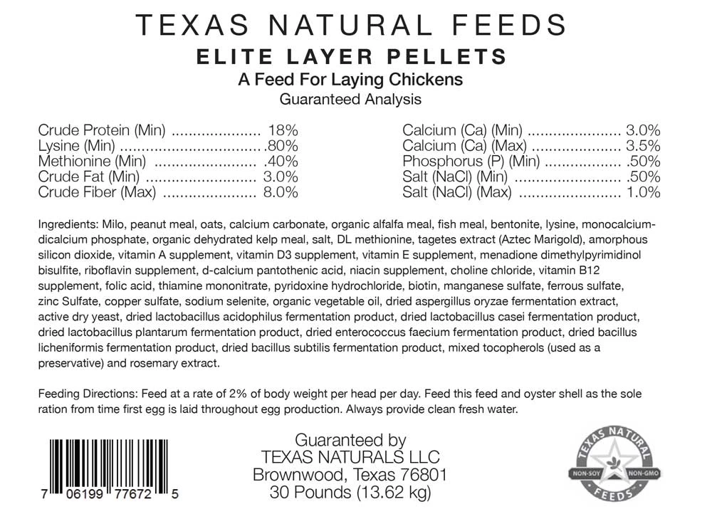 OUR ELITE LINE of Non-Soy, Non-GMO feeds combines great products along with alfalfa and yummy peanut meal to make a tasty and nutritious poultry feed.