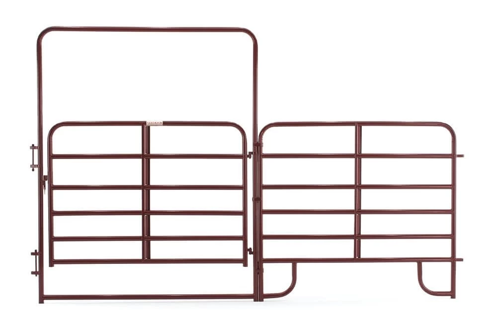 Tarter’s Walk-Thru Arch Gate with Panel is built tough for livestock handling. Our Walk-Thru Arch Gate with Panel is available in 1-1/2, 1-3/4 and 2 round high-tensile strength steel tubing with continuous-welded saddle joints and our corrosion resistant powder coat finish for any environment or handling situation. The quick-pin latch system makes for easy hookup and the panels feature custom loop legs to prevent sinking.