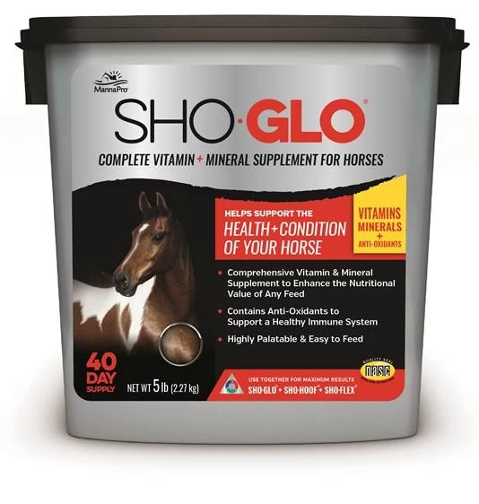 Sho-Glo is a complete vitamin and mineral supplement to support the health and condition of your horse. The advanced technology that goes into Sho-Glo has earned it the NASC Quality Seal, Veterinarian Recommended approval and the Happy Horse Guarantee. Sho.Glo is one of the new products in the Sho-Line Supplements that has been scientifically formulated to support your horses best health and performance.