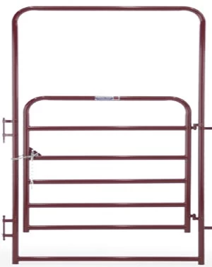 Tarter’s Walk-Thru Arch Gates provides ease of access for livestock and herdsmen into round pens. Our Walk-Thru Arch Gates are available in 1-3/4 in and 2 in round high tensile steel tubing with continuous welded saddle joints. They are available in 4 ft or 6 ft widths with an 8 ft tall arch. Engineered for ultimate reliability and ease of use, Tarter’s Walk-Thru Arch Gates also feature a quick-pin latch system for easy hookup and our single hand sliding lockable gate latching system.