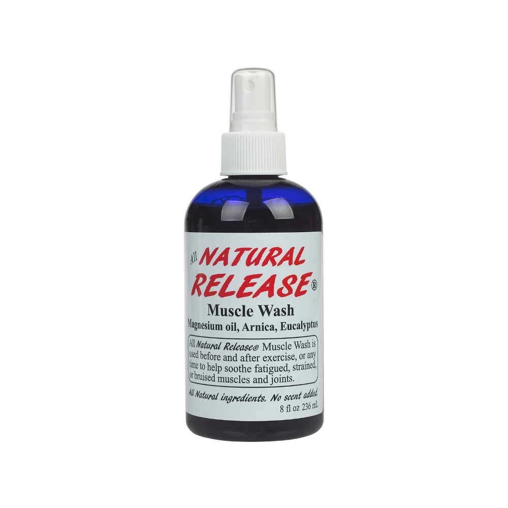 Natural Release Muscle Wash is a fast-acting muscle relaxant spray. Goes to work in minutes! Helps release tension in stiff or strained muscles, joints, and ligaments. Reduces swelling, inflammation, and bruising. Natural Release Muscle Wash can be sprayed directly onto affected areas, or use under your saddle or leg wraps. All-natural formula with magnesium oil, arnica, and eucalyptus. No heat, scent, menthol, or alcohol. Natural Release will begin diminishing the ache within minutes. For chronic problems, reapply after 15 minutes, and then every 3-4 hours as needed.