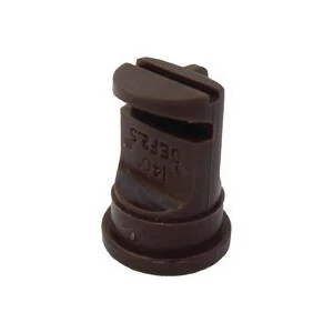 For broadcast spraying with small boom sprayers fitted to all- terrain vehicles. Wide angle allows the nozzle to be spaced at wider intervals effectively reducing the number of nozzles required. Also for applications of herbicides, fungicides, insecticides and plant growth regulators. Reduces potential clogging due to large orifice. Produces course droplets with reduced potential for drift. 140° ideal for use over the 30 to 60 psi pressure range. One-piece design. ISO standard colors and sizing ensures that the fan tip fits all standard caps and twin cap. Precision molded in tough and durable polyacetal.