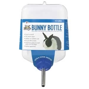 This large-capacity plastic water bottle works great for rabbits, hamsters, gerbils, guinea pigs, chinchillas, and ferrets. The extra-wide mouth accommodates ice cubes for cooling the water in hot weather. Easily attaches without tools to most wire hutches. Can be used indoors and outdoors and is airline approved. Holds 64-oz (2 Qt or 1/2 gallon).