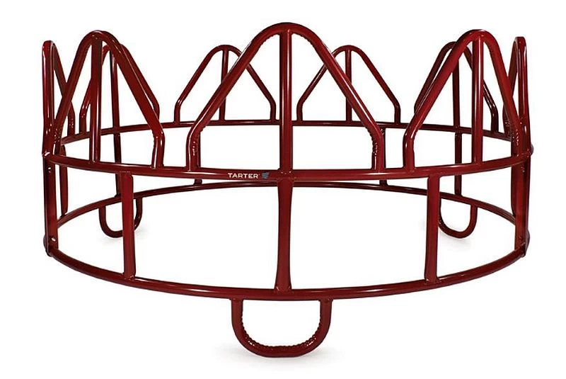 Tarter’s Equine Pro Hay Feeder safely serves up fresh, clean hay. It’s 8-feet in diameter so it will easily accommodate large, round hay bales. Rounded dividers with no sharp edges ensure equine safety and give horses enough space to comfortably eat. A corrosion-resistant finish means it will last a long time out in the elements. The design of the loop legs will prevent the feeder from sinking into the ground. Not recommended for cattle.