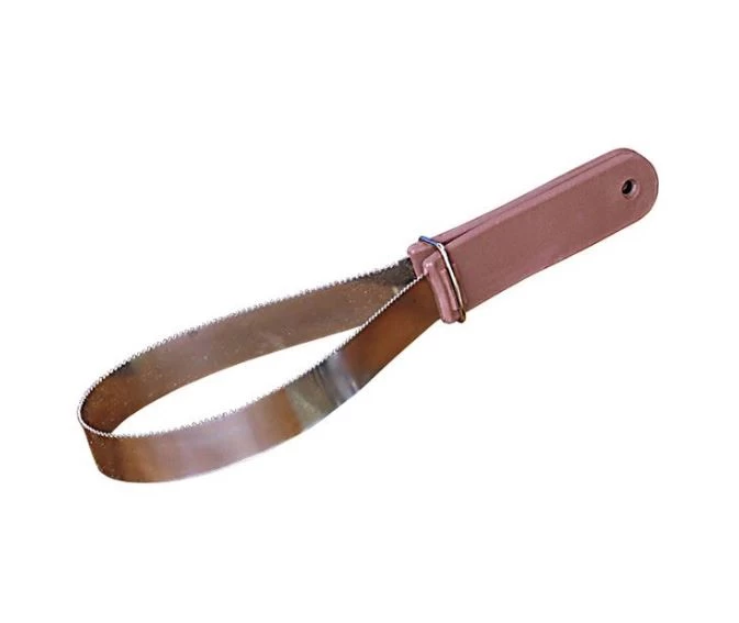Quality-made from stainless steel, this shedding blade removes loose hair and grime. The smooth side is perfect for sweat scraping and water removal. Plastic handle.