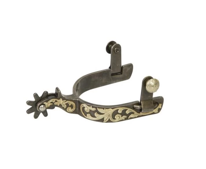 These ladies’ spurs feature a 1-3/4 in shank, 3/4 in band and 8-point replaceable rowel with cotter pins. Light blackening finish offers an on-trend look.