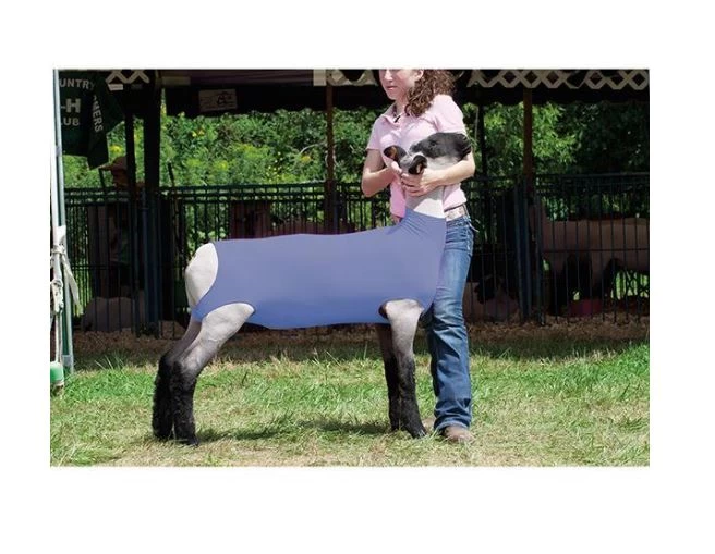 Made from a nylon and spandex blend for the perfect fit and stretch, this blanket is ideal for helping keep show lambs clean. To help prevent ripping, the edges are reinforced with double layer binding. Machine wash separately in cold water, gentle cycle; line dry only; do not bleach. Large fits lambs 130-170 lbs.