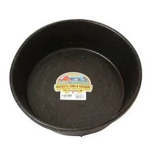 Molded from the finest corded rubber on the market, nothing matches the pliability and strength of DuraFlex rubber. Crush-proof, crack-proof, and freeze-proof so you can use it indoors or outdoors year-round. A great feeding pan that holds up to rugged use and abuse. For outdoor use, works great to supply your own 14 in spare tire to anchor the pan (optional, not included). Rubber is naturally safe and soft for animals. Perfect for horses, sheep, goats, alpacas, llamas, and other livestock. 14.5 in diameter by 4.5 in high, holds 8 Qt (2 gallons)
