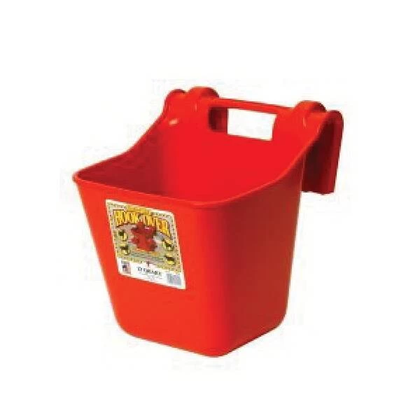 The Little Giant hook over portable feeder is ideal for field, pasture, trailer, stall or kennel. Performs well for a variety of animals, including horses, goats, sheep and dogs. Durable, impact-resistant feeder has a molded-in bracket that easily hooks over any 2 in wide board to instantly deliver a sturdy feed bucket. For more permanent installations, simply install two screws in the holes provided. Stackable for carrying or storage. Top features a convenient carrying handle so you can carry one or more feeders in one hand. Measures 12-1/8 in long by 13-7/8 in wide by 14-1/2 in high, holds 12 Qt (3 gal).