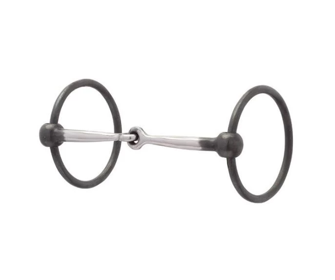 Quality bit features a 5 in sweet iron snaffle mouth with copper inlay and 3 in o-rings. Classic black steel finish.