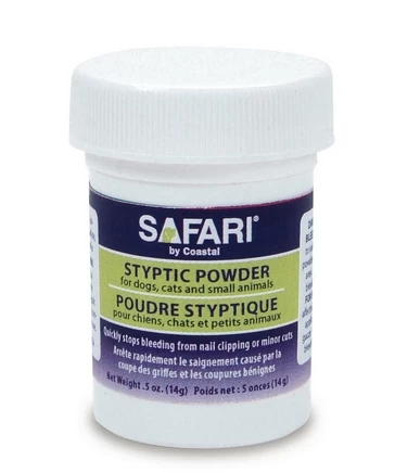 Our Safari Pet Styptic Powder quickly stops bleeding caused by nail trimming or minor cuts. Generously apply to nail quick or affected area using a clean, moistened applicator such as a cotton swab or gauze. Apply moderate pressure until bleeding stops. Keep out of reach of children. For external use only. Do no use on open wounds, burns or in body cavities. Keep container tightly sealed when not in use.